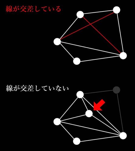 概要(未経験者向け) 蜘蛛の巣のアイコンの部屋。 1つ目のゲームは、右の壁から左の壁に糸が何本もかかっている道を、糸に触れないように進んでいくもの。 2つ目のゲームは、複数の糸で繋がっている蜘蛛を動かして、全ての糸をほどくもの。 言葉では説明…